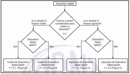 É importante observar o nível de volatilidade ou Ordem de Volatilidade de um dado digital, em que as informações são armazenadas no sistema periciado ou da mídia questionada, de maneira a sempre iniciar a coletar os dados mais voláteis para o menos voláteis. Caso essa ordem não seja respeitada, haverá um risco de perda e ou alteração dos dados, prejudicando o resultado do trabalho pericial (FARMER, 2007). Por vezes, dependendo do que se busca, é mais vantajoso fazer uma análise com o sistema ligado do que uma análise “post mortem”, ou seja, com o sistema desligado. O fluxo abaixo ajudará o expert em sua tomada de decisão para execução da coleta ou aquisição de potencial evidência digital (ABNT,2013).